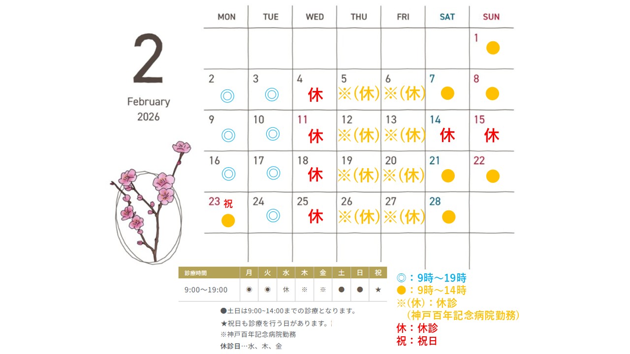 診療時間 9:00~19:00休 診 日 水、木、金、土日(隔週)、祝日